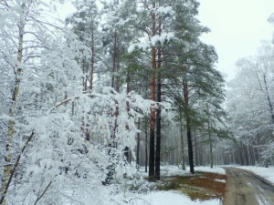 Inaczej sytuacja przedstawia się w zagajnikach iglastych.. Te, szczególnie przy temperaturach bliskich zeru stopni Celsjusza przykryte są ciężką, wciskającą się w każdą wolną przestrzeń mokrą, grubą warstwą śniegu. Dla naganki takie zagajniki to istny koszmar.