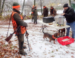 Pomimo, iż Święty Hubert zwierza dziś poskąpił, to po kniei niósł się dźwięk rogu sygnałowego  wzywającego na łowy i obwieszczającego ich zakończenie, a zarówno naganiaczom jak i łowcom towarzyszyły myśliwskie psy – gończe i posokowce.
