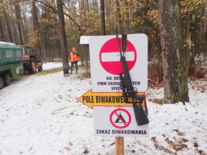Jeszcze wczoraj tłumy grzybiarzy korzystały z ostatniego już chyba w tym roku wysypu podgrzybków pilnie zapełniając wiaderka i koszyki. Niestety mogło to wprowadzić niepokój w kniei. Jelenie nie lubią, gdy ktoś się przemieszcza w ich okolicy. Wszechobecne dziś roztopy zniechęciły do wyjścia z nor lisy, sarny pomykały gdzieś w oddali, a dziki… no cóż dziki musiały być gdzie indziej.