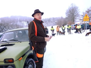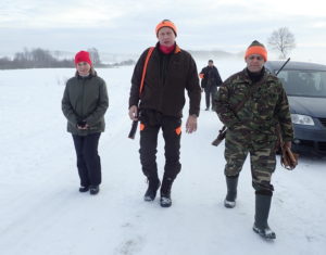 Biała stopa i do tego bezwietrzna pogoda pozwalały sycić zmysły podczas sobotniego polowania zbiorowego w KULIKU. Sobotnie łowy prowadził podłowczy koła –  Piotr Pańczyk. W linii stanęło ponad dwadzieścioro myśliwych. Naganka podkładała zaś w miocie kilka piesków. Obecność naszych czworonożnych towarzyszy łowów jest ekscytująca zarówno dla nich, jak i dla uczestników polowania. Pies myśliwski gończy ma za zadanie ruszyć zwierzynę i wypchnąć ją w kierunku myśliwych. Gdy psy natrafią na zwierzynę i rozpoczną gon sygnalizowany on jest poprzez podwyższenie tonu szczekania i jego rytmiczne powtarzanie. Jagdteriery, foxteriery, gończe polskie, posokowce bawarskie –  te dziś współpracowały ze sobą w miocie, z całkiem niezłym efektem jako psy gończe. Tropowce zaś pozostawały na stanowiskach przy swoich przewodnikach, aby w przypadku zranienia zwierza doprowadzić myśliwego do postrzałka. Carmel i Ochra nie miały możliwości wykorzystania dziś swoich możliwości, gdyż zwierzyna po strzale nie wymagała dochodzenia.
