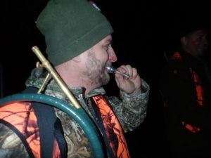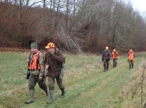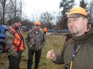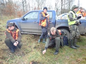 21 myśliwych, czterech stażystów, cztery psy pracujące w miocie i jeden posokowiec o poranku spotkało się na odprawie na polach Trzepowa.