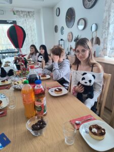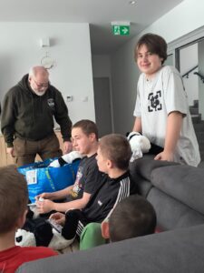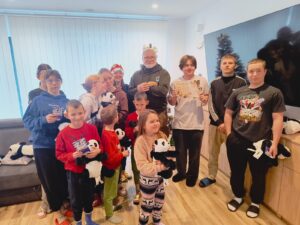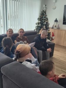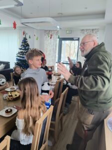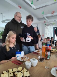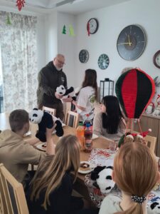 Myśliwi zaprzyjaźnieni z dziećmi i ich wychowawcami tradycyjnie spotykają się w okresie zimowych świąt przynosząc skromne podarunki.